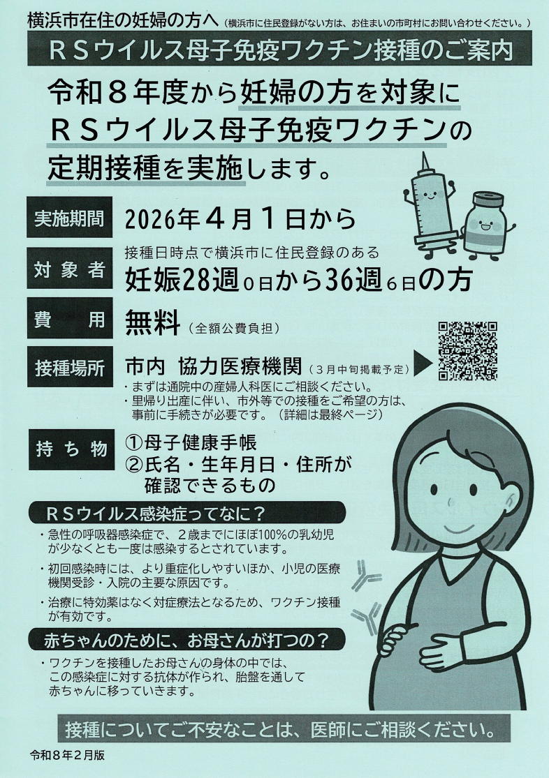 ・令和8年4月よりRSウィルス母子免疫ワクチン接種事業(定期接種)が始まります